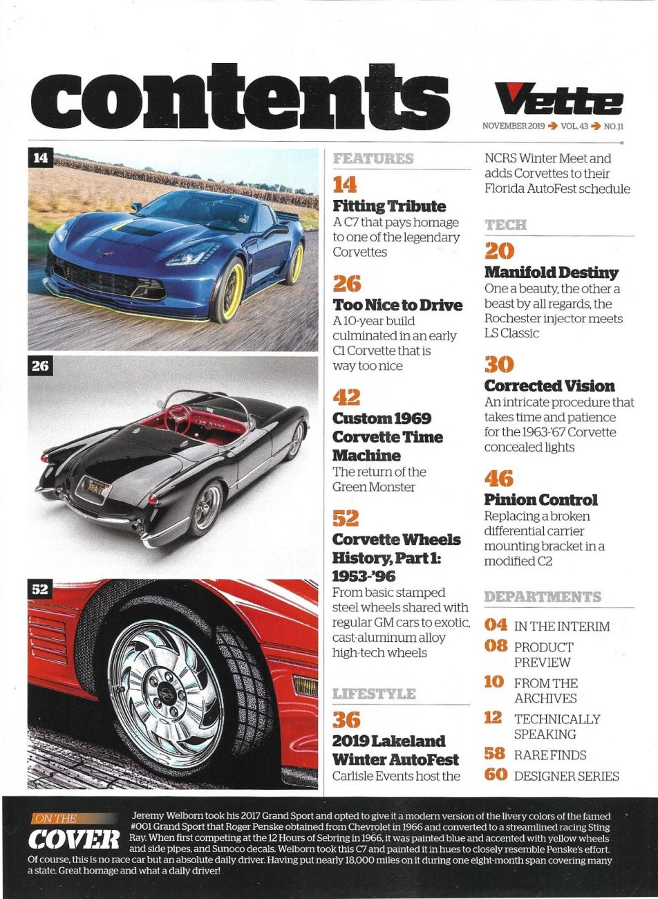 Reviews VETTE 2019 NOV - WHEELS HIST 53-66 PT 1, '69 GREEN MONSTER, 63-67 LIGHTS
