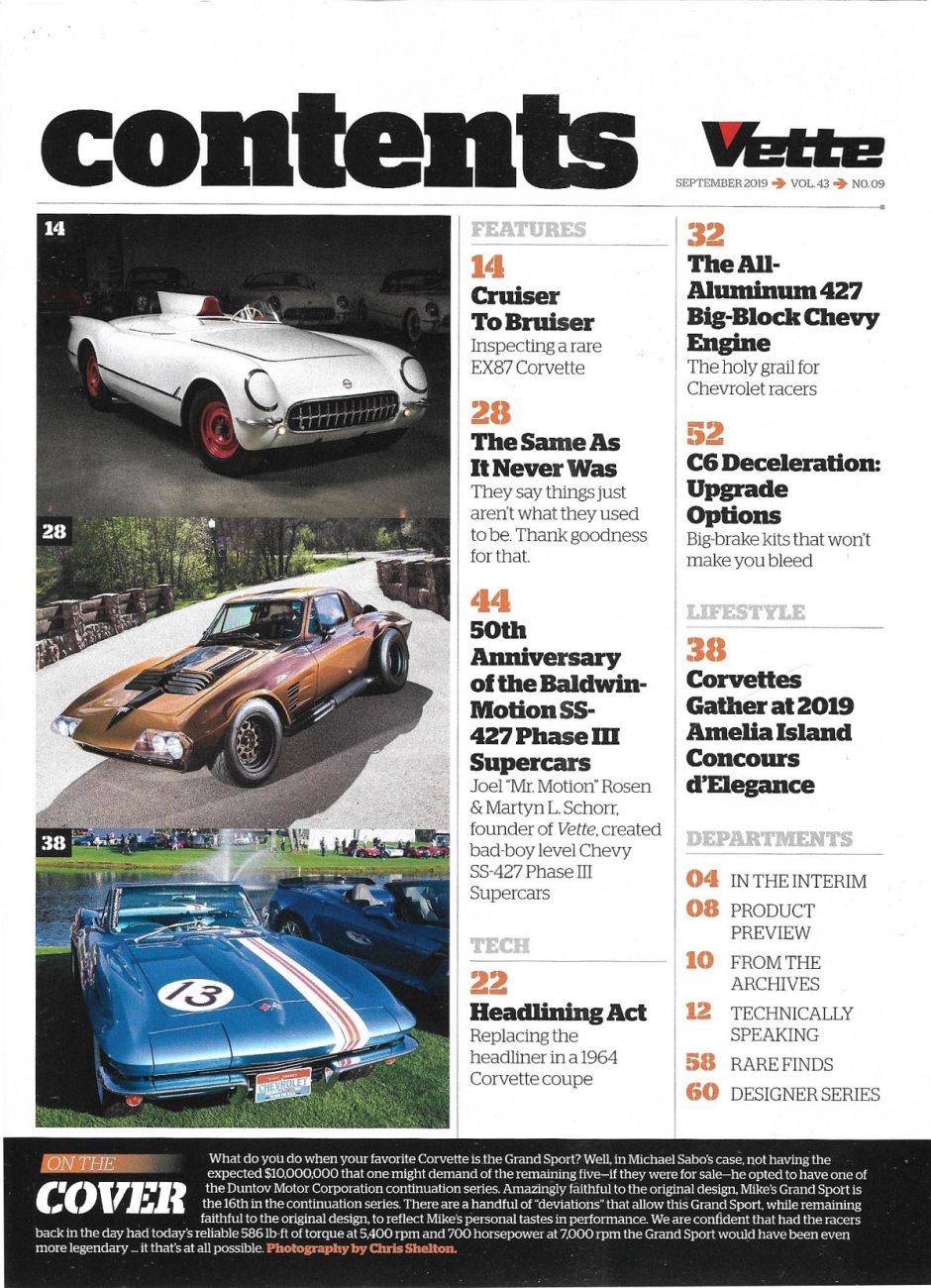 VETTE 2019 SEPT - BALDWIN MOTION SS-427 50TH, HEADLINERS, GRAND SPORT