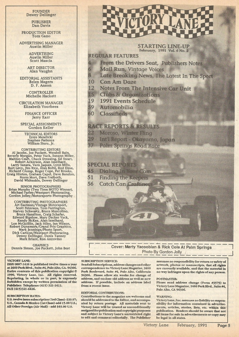 VICTORY LANE 1991 FEB - THE VINTAGE & HISTORIC RACING NEWS MAGAZINE