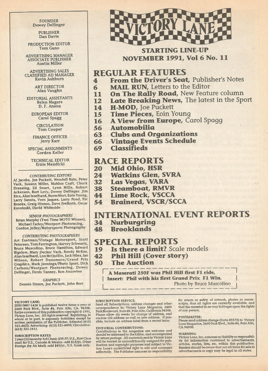 Reviews VICTORY LANE 1991 NOV - THE VINTAGE & HISTORIC RACING NEWS MAGAZINE