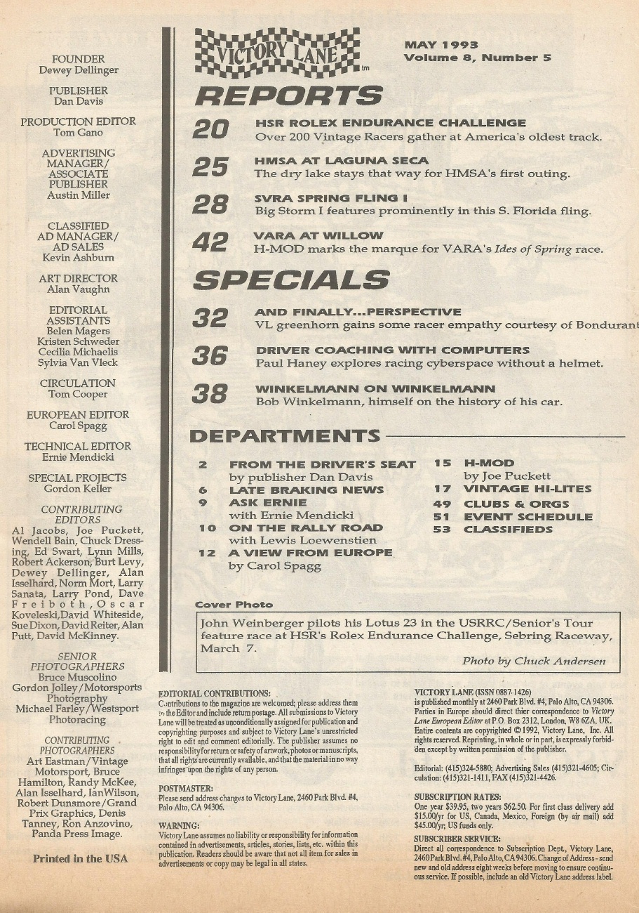 VICTORY LANE 1993 MAY - THE VINTAGE & HISTORIC RACING NEWS MAGAZINE