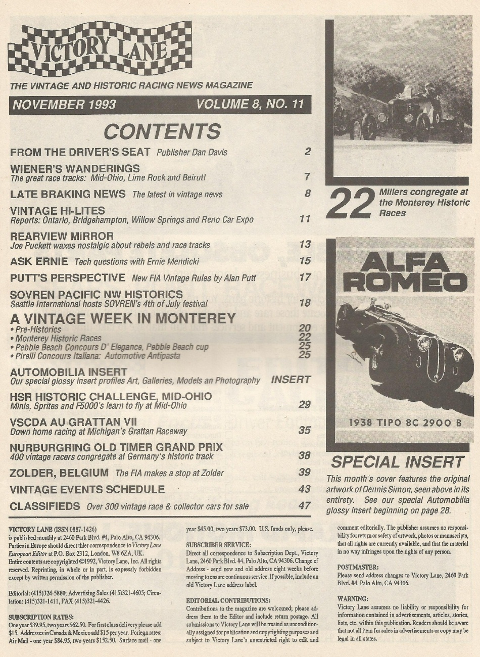 Reviews VICTORY LANE 1993 NOV - THE VINTAGE & HISTORIC RACING NEWS MAGAZINE