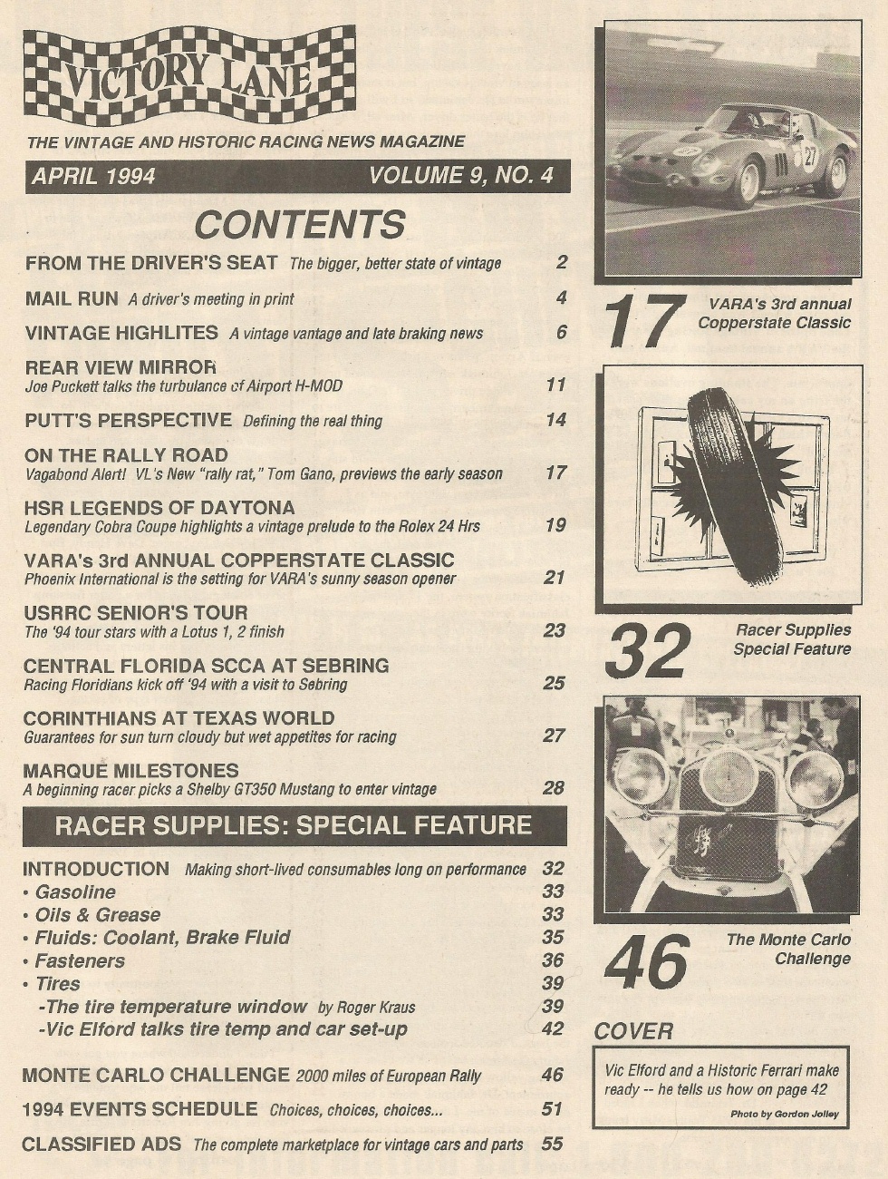 VICTORY LANE 1994 APR - THE VINTAGE & HISTORIC RACING NEWS MAGAZINE
