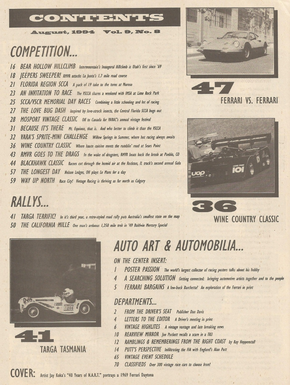 Reviews VICTORY LANE 1994 AUG - THE VINTAGE & HISTORIC RACING NEWS MAGAZINE