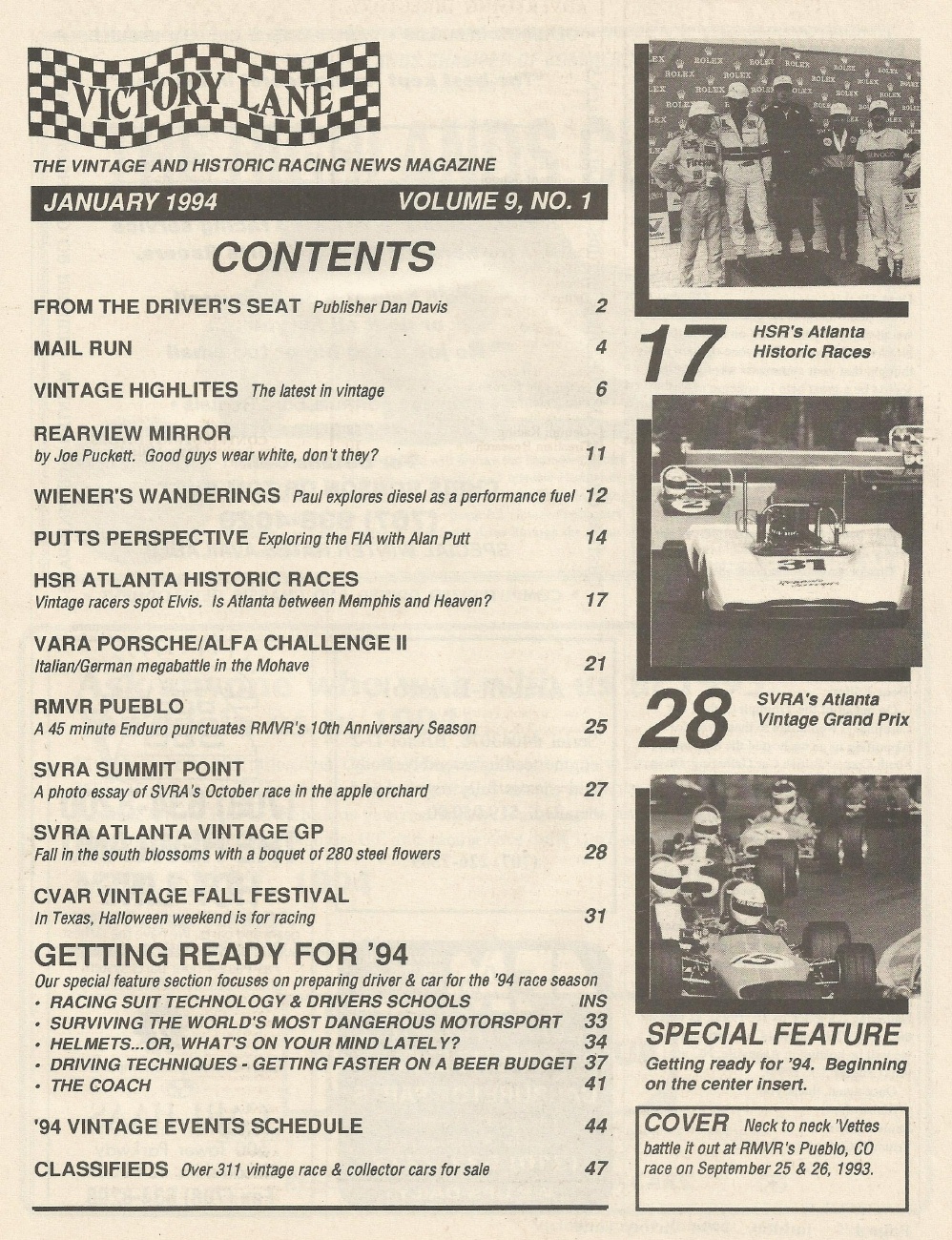 VICTORY LANE 1994 JAN - THE VINTAGE & HISTORIC RACING NEWS MAGAZINE