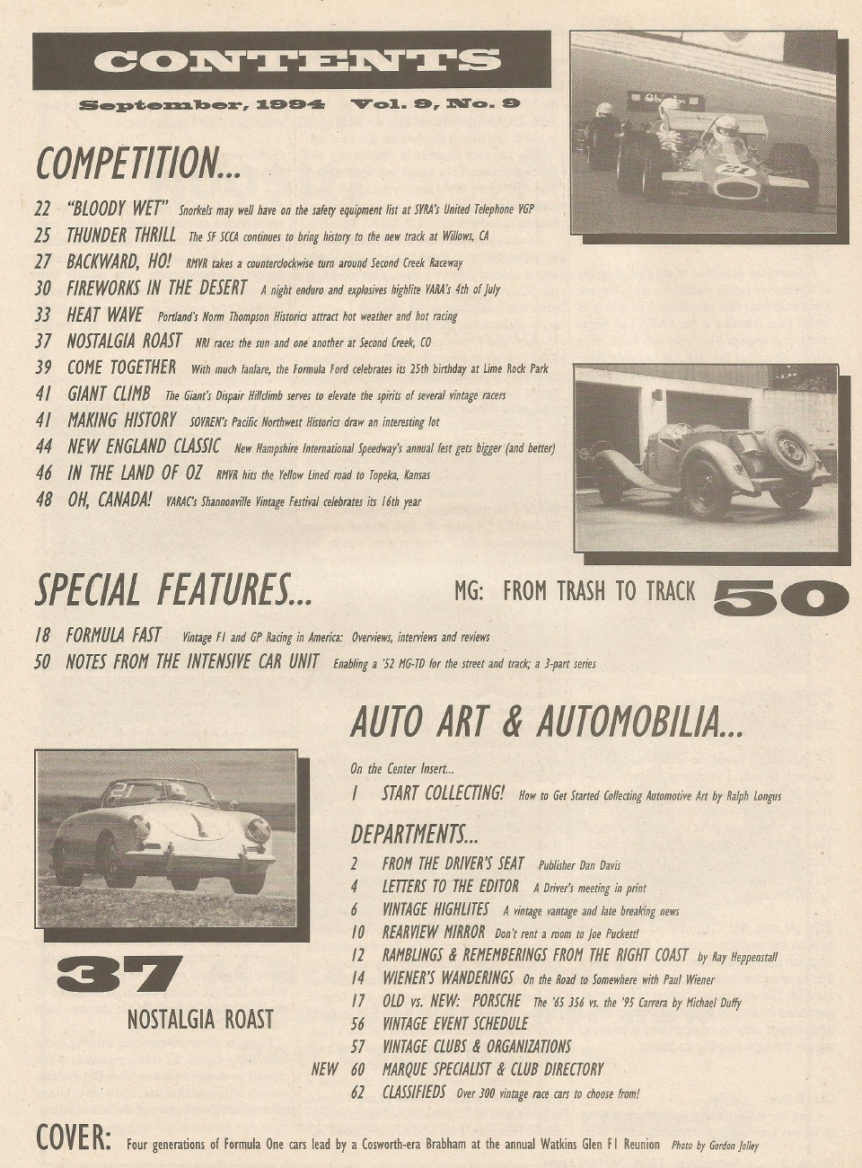 Reviews VICTORY LANE 1994 SEPT - THE VINTAGE & HISTORIC RACING NEWS MAGAZINE