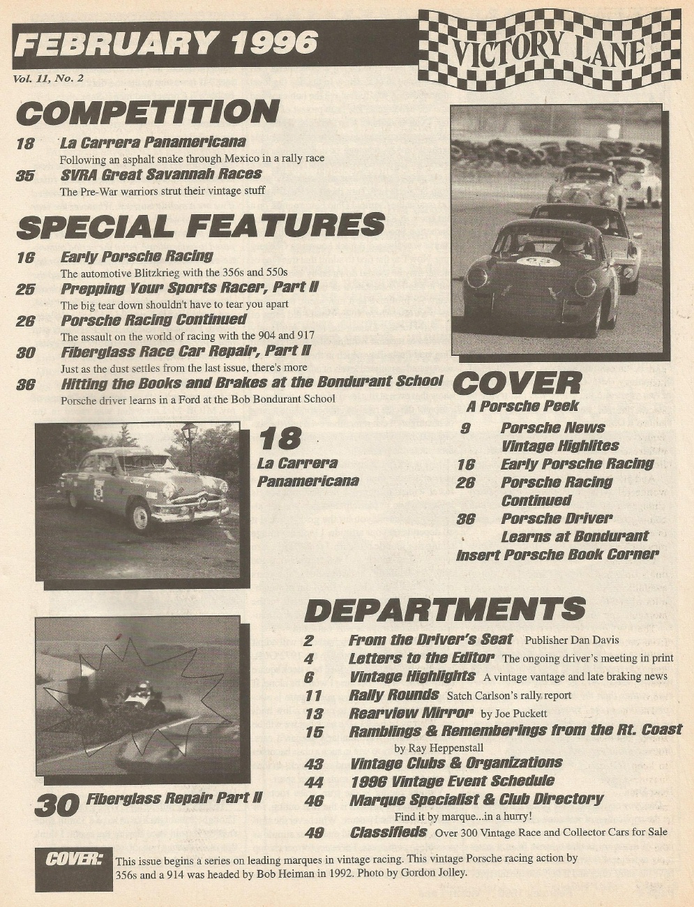 VICTORY LANE 1996 FEB - THE VINTAGE & HISTORIC RACING NEWS MAGAZINE