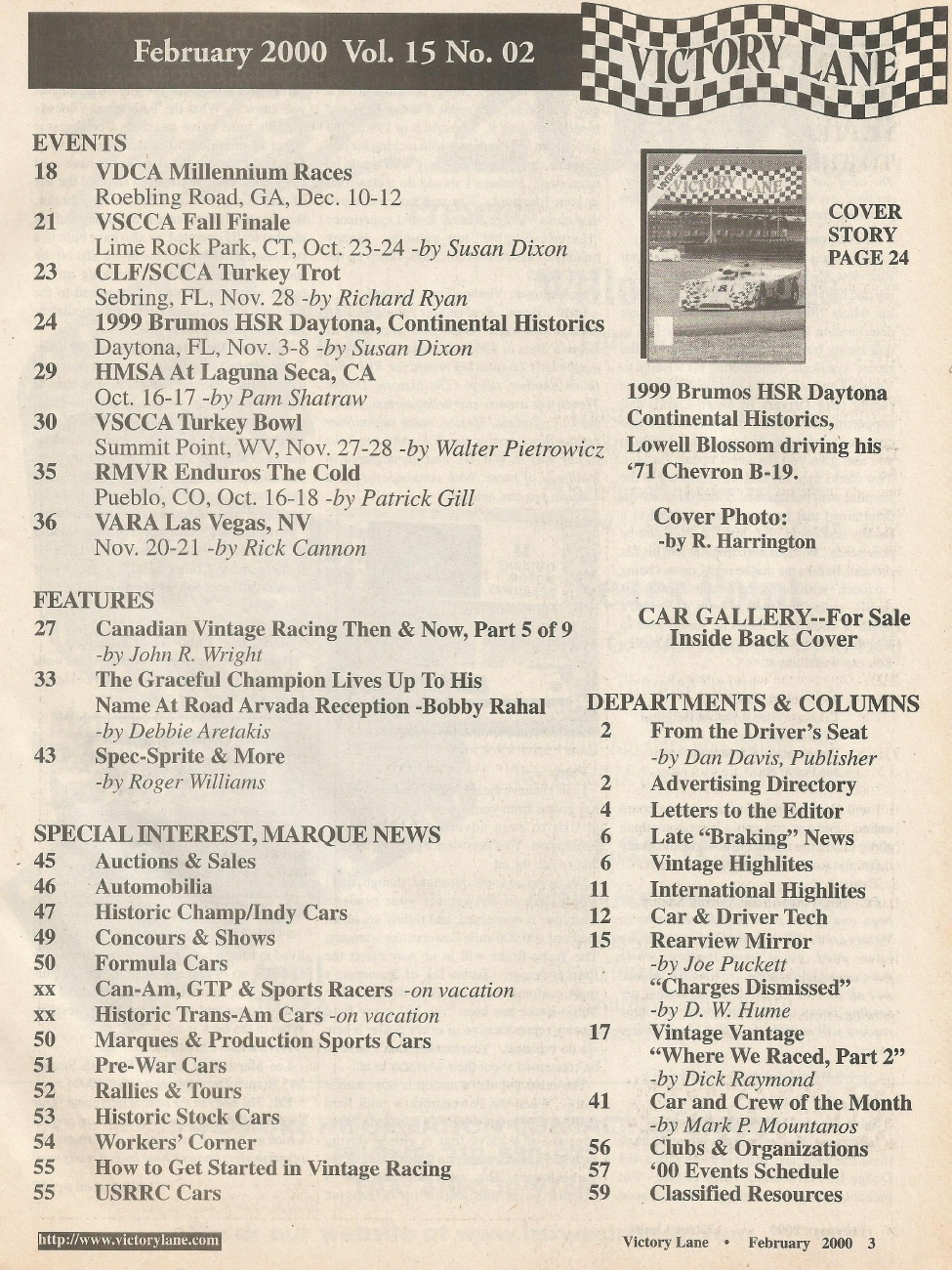 Reviews VICTORY LANE 2000 FEB - THE VINTAGE & HISTORIC RACING NEWS MAGAZINE