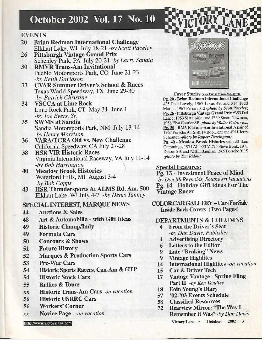 VICTORY LANE 2002 OCT - THE VINTAGE & HISTORIC RACING NEWS MAGAZINE