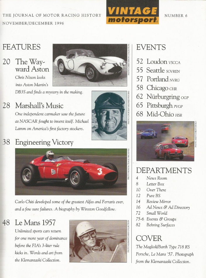 Reviews VINTAGE MOTORSPORT 1996 NOV - MISSING DB3S, 1957 LeMANS, CARLO CHITI, LAMM