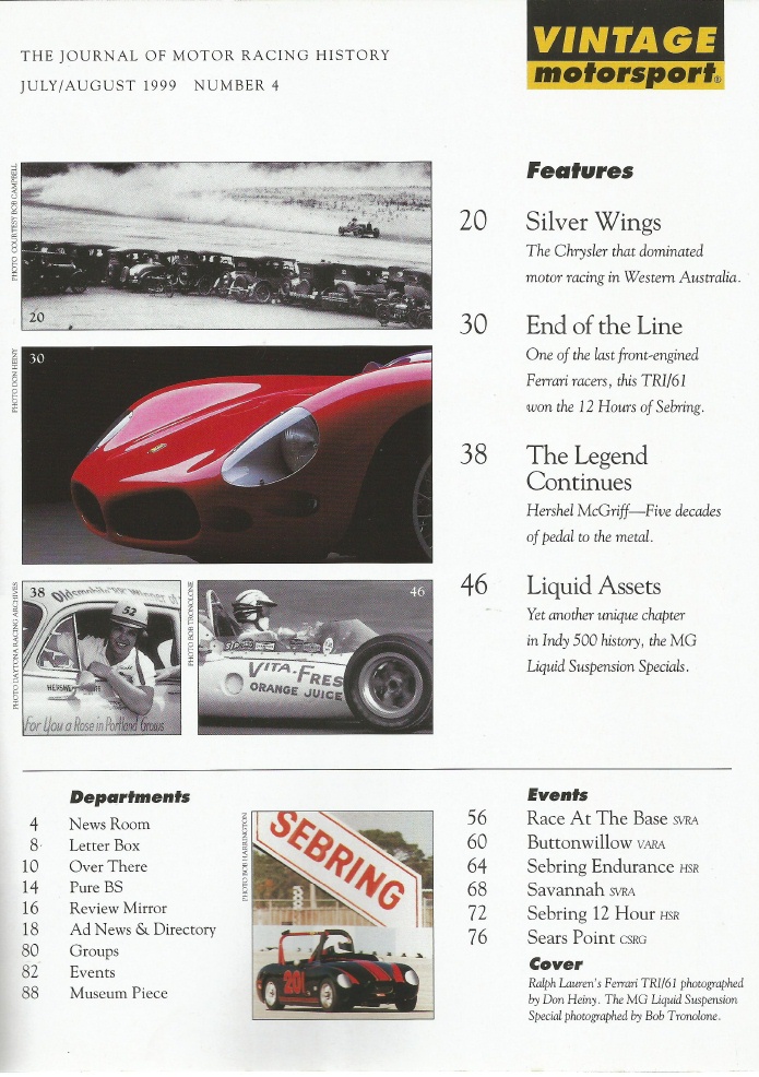 Reviews VINTAGE MOTORSPORT 1999 JULY - FERRARI TRI/61, McGRIFF, MG LIQUID SUSPENSION