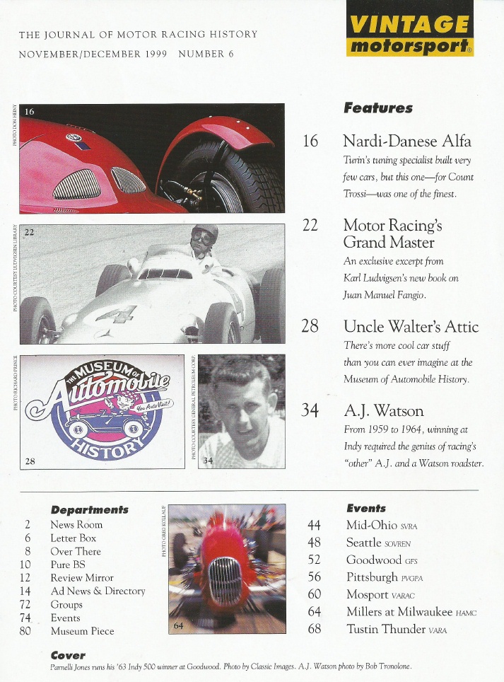 Reviews VINTAGE MOTORSPORT 1999 NOV - AJ WATSON, NARDI-DANESE ALFA, JUAN MANUEL FANGIO