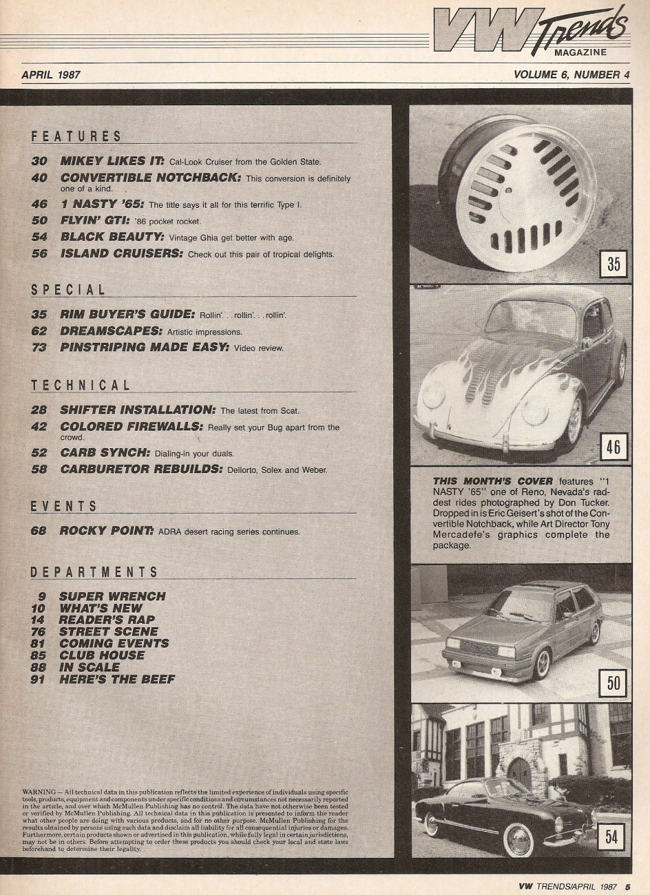 Reviews VW TRENDS 1987 APR - HOW TO PINSTRIPE, CARB BUILDUP, SHIFTER INSTALL