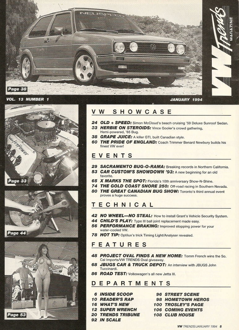 Reviews VW TRENDS 1994 JAN - T-3 BALL JOINT REPLACED, SWEET CUSTOM GHIA, BUG SHOW