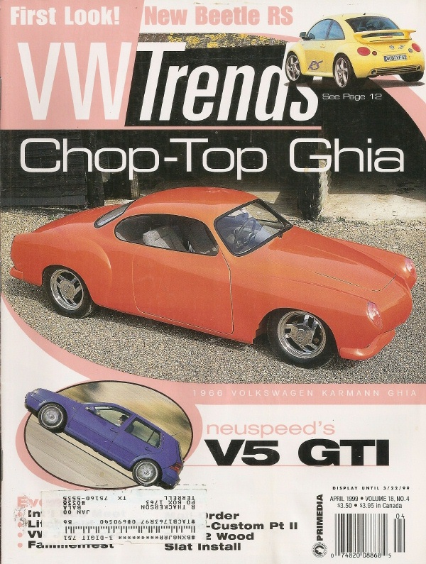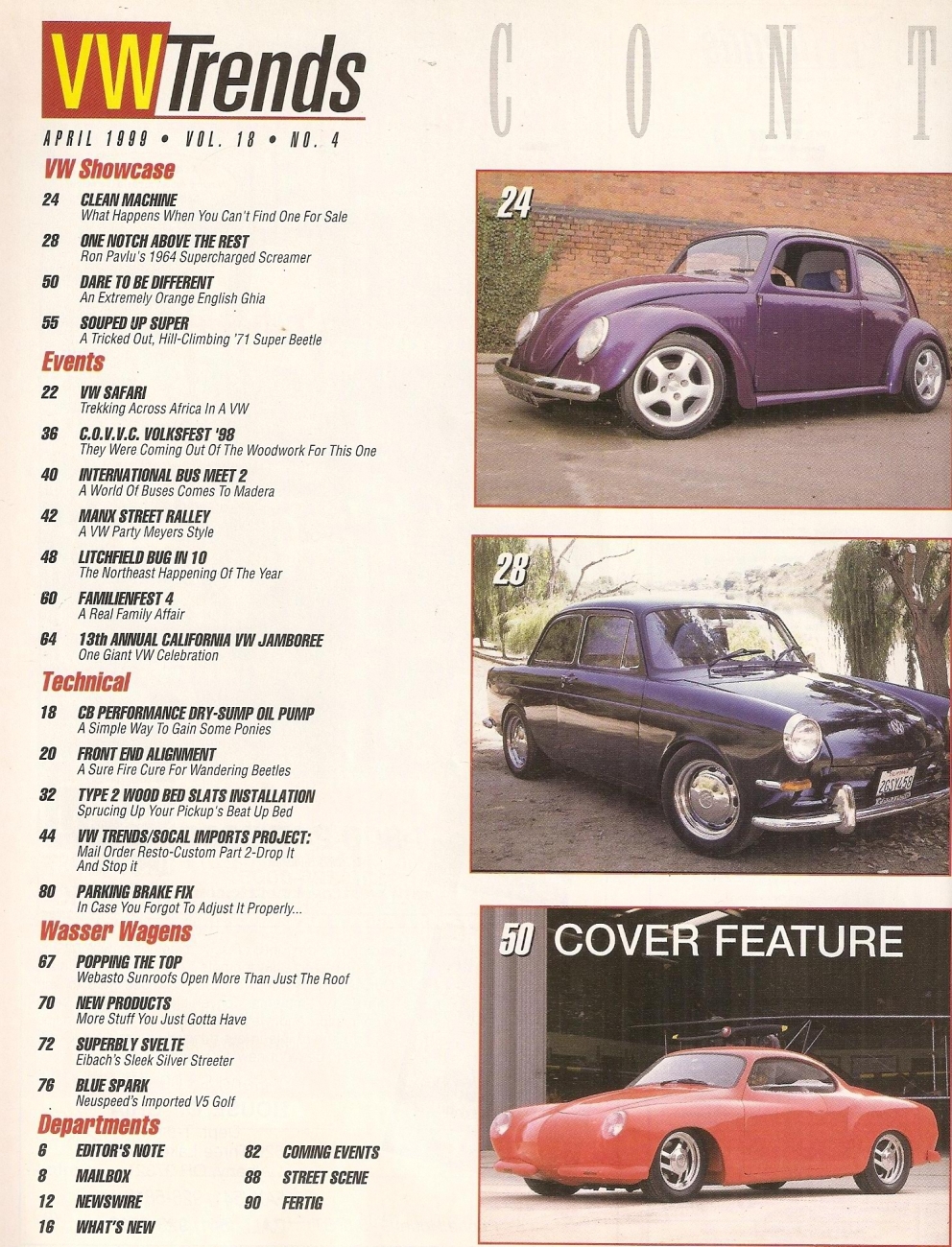 Reviews VW TRENDS 1999 APR - CHOPPED GHIA, DRY-SUMP OIL PUMP, WOOD BED INSTALL*