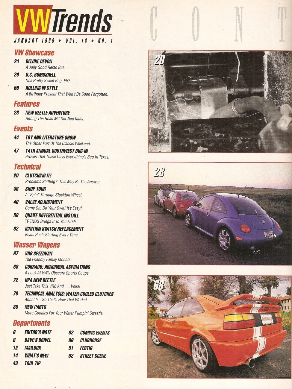 Reviews VW TRENDS 1999 JAN - VR6 NEW BEETLE, SWEET GHIA, HOT CORRADO, QUAIFE DIFF