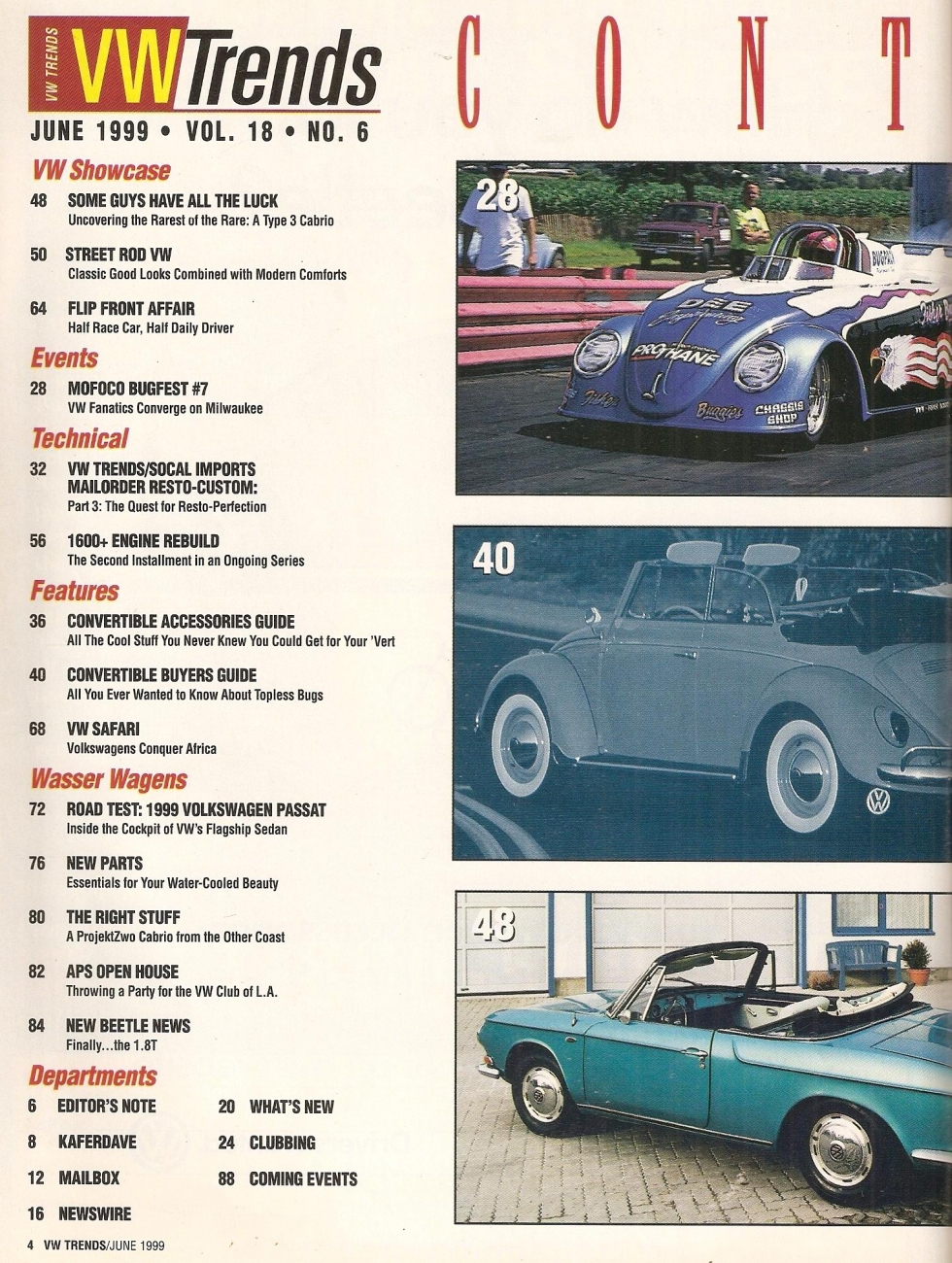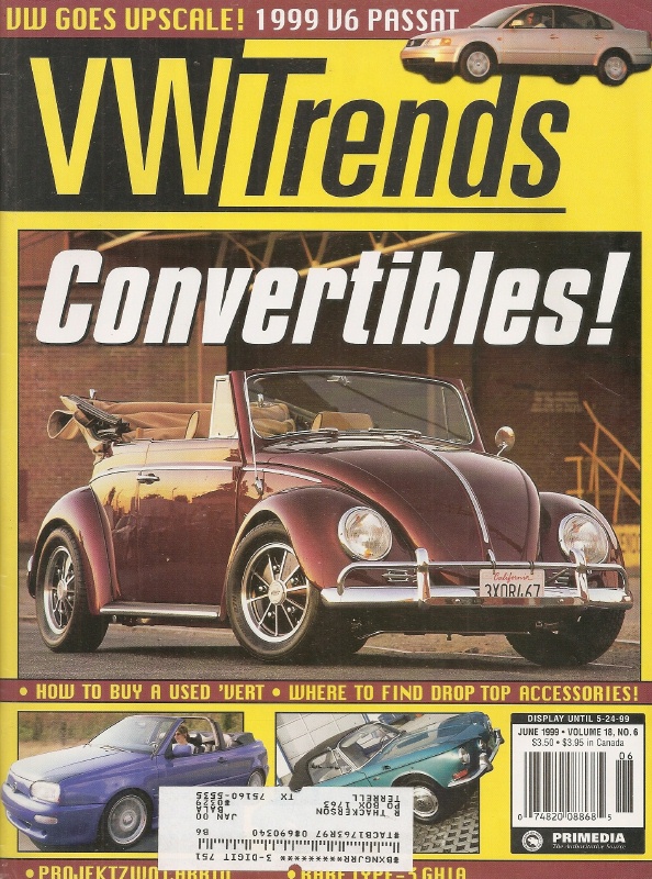 Reviews VW TRENDS 1999 JUNE - NEW V6 PASSAT, RARE TYPE 34 GHIA DROPTOP, 1600 REBUILD
